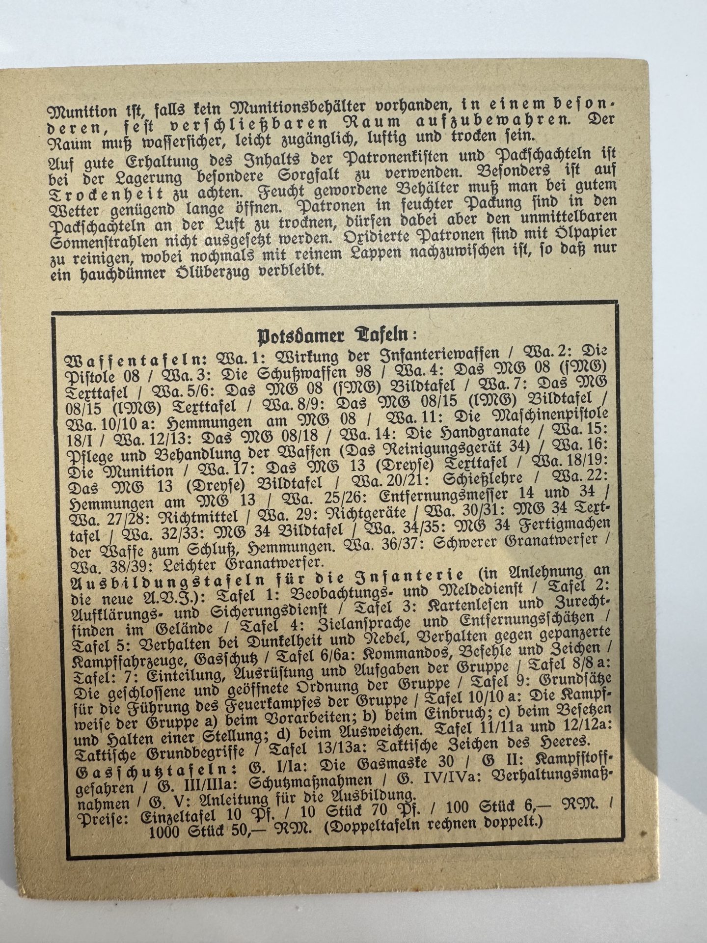 Offizielle Waffentafel der Wehrmacht mit zahlreichen Abbildungen zur Konstruktion, Kennzeichnung, Verwendung und Lagerung von Munition.