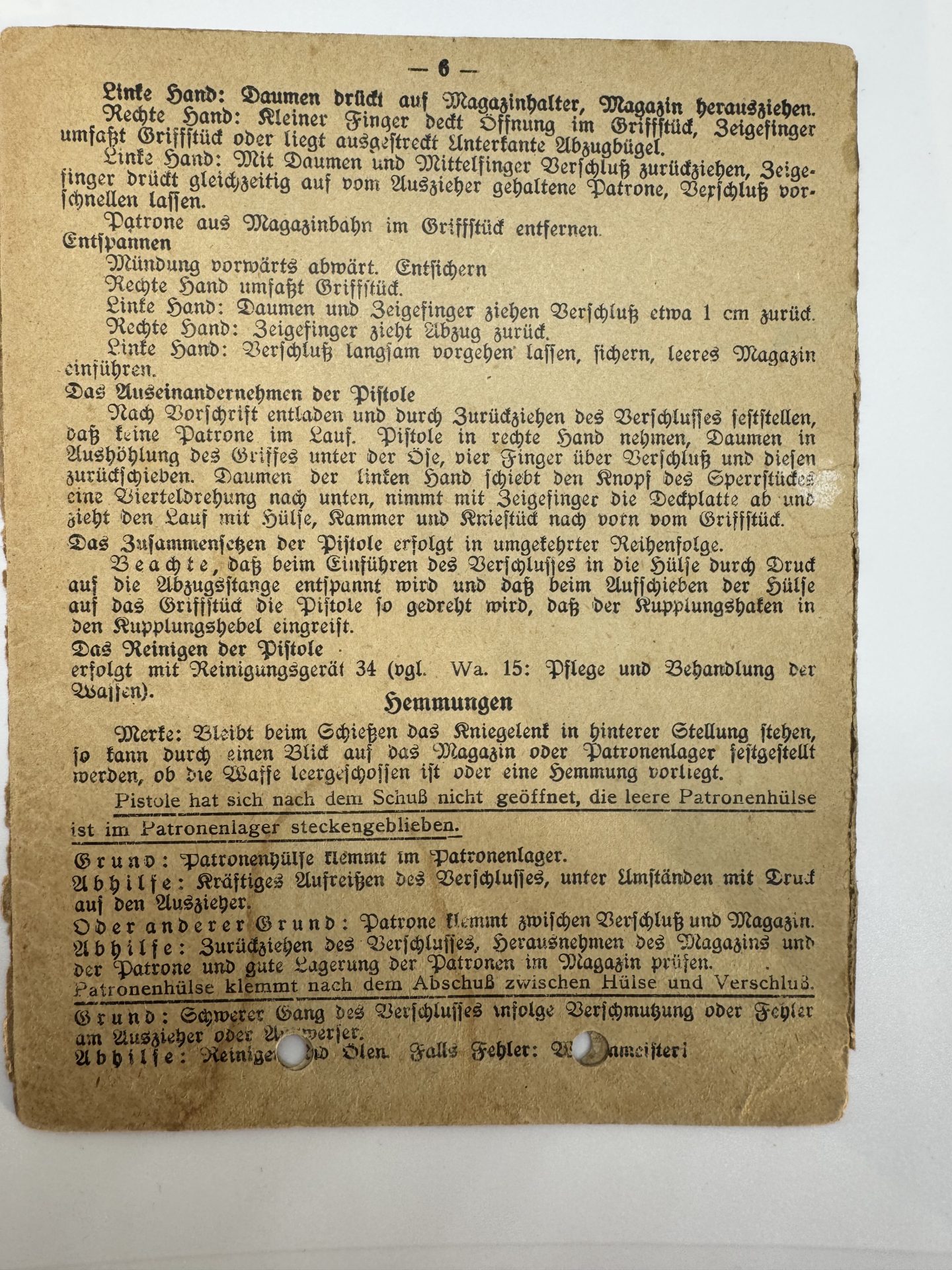 Complete manual, original paper, with filing holes, worn edges and visible signs of use.