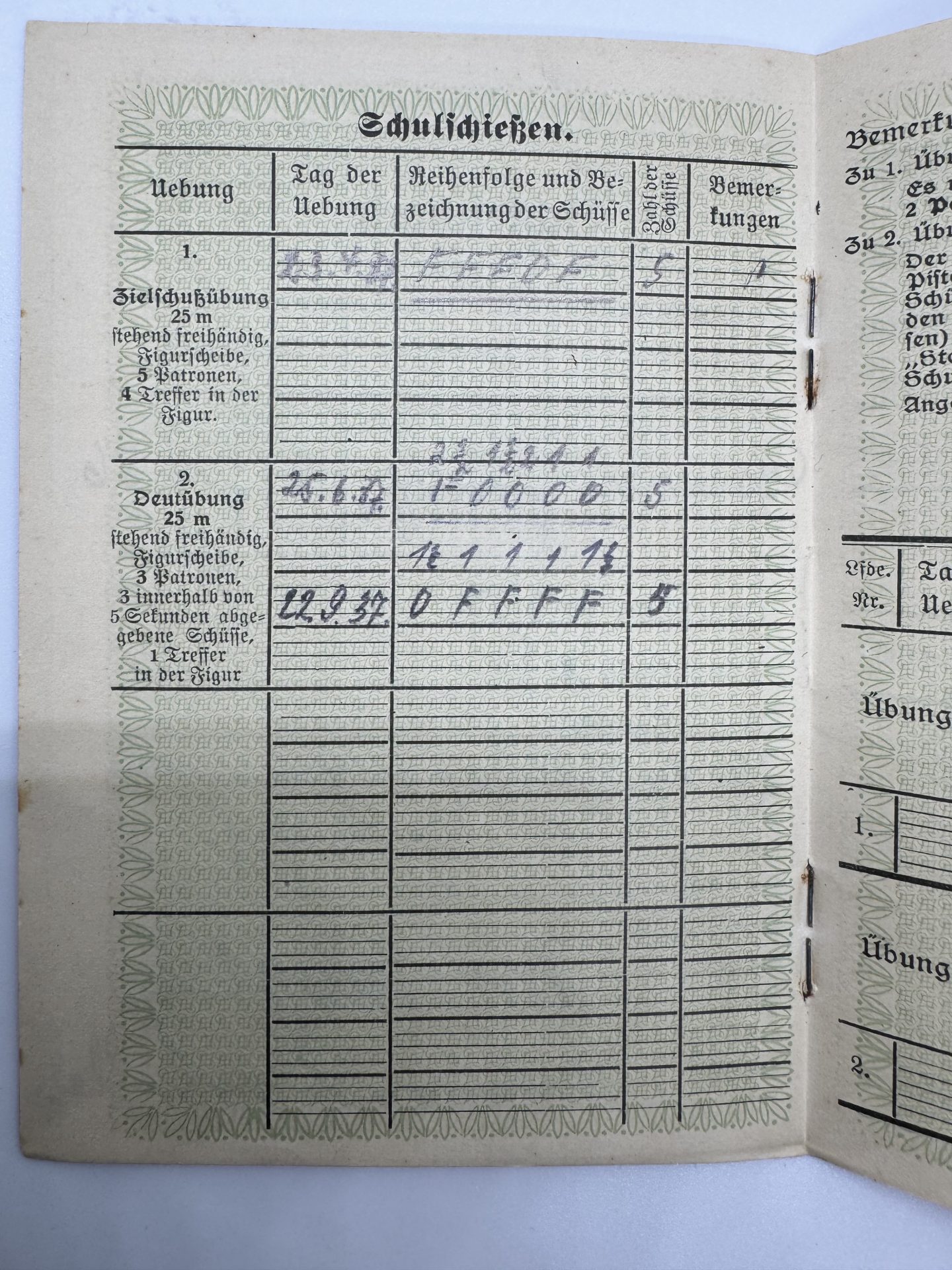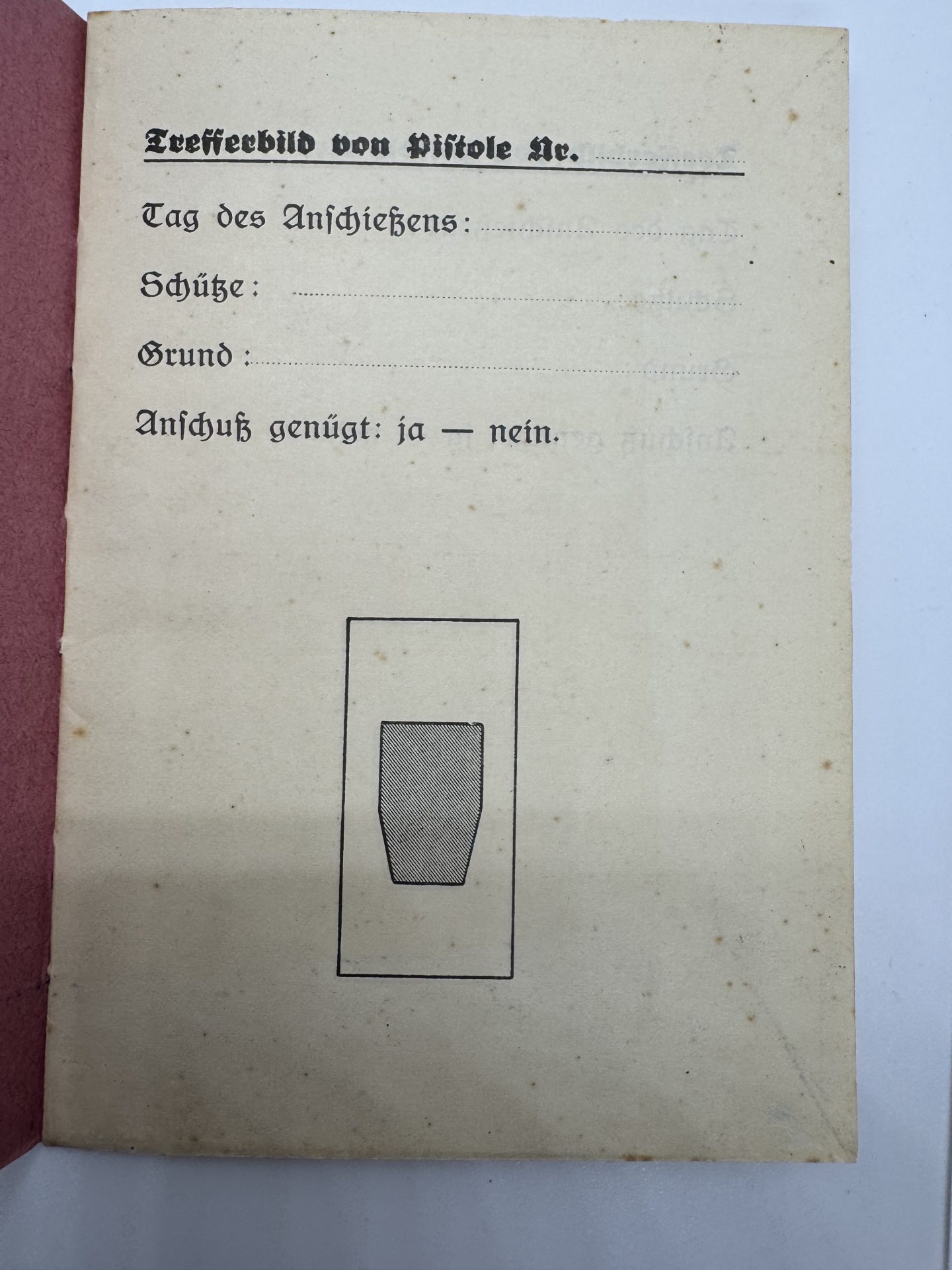 Originales deutsches Schießbuch für Pistole, verwendet zur Schießausbildung und Leistungsüberwachung.