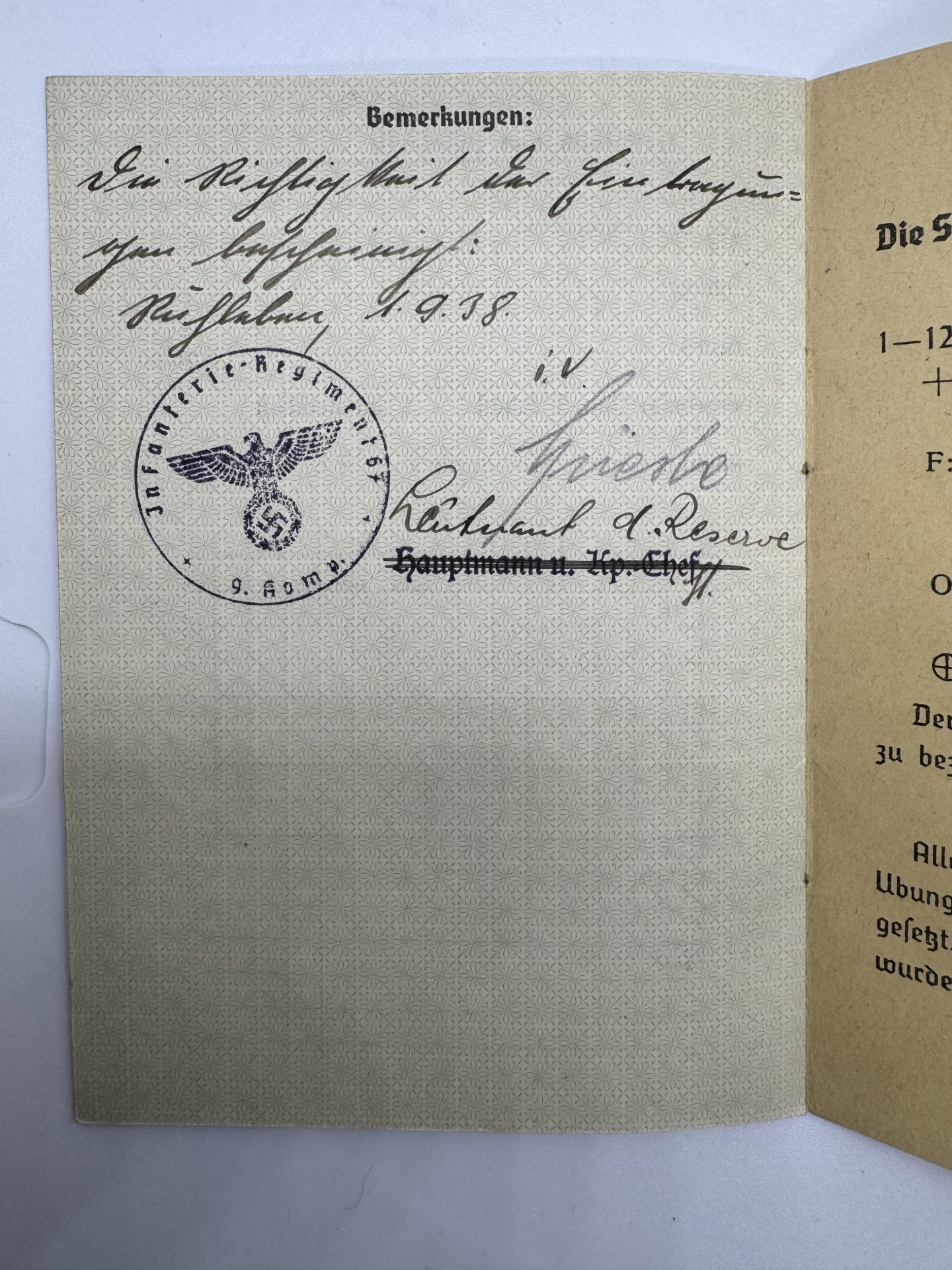 Highly collectible historical document for Luger P08 and Wehrmacht collectors.