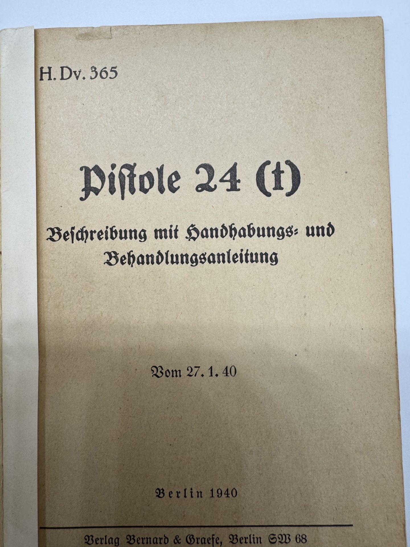 Original German Army manual H.Dv. 365 – Pistole 24 (t), dated 27 January 1940, published in Berlin by Bernard & Graefe.