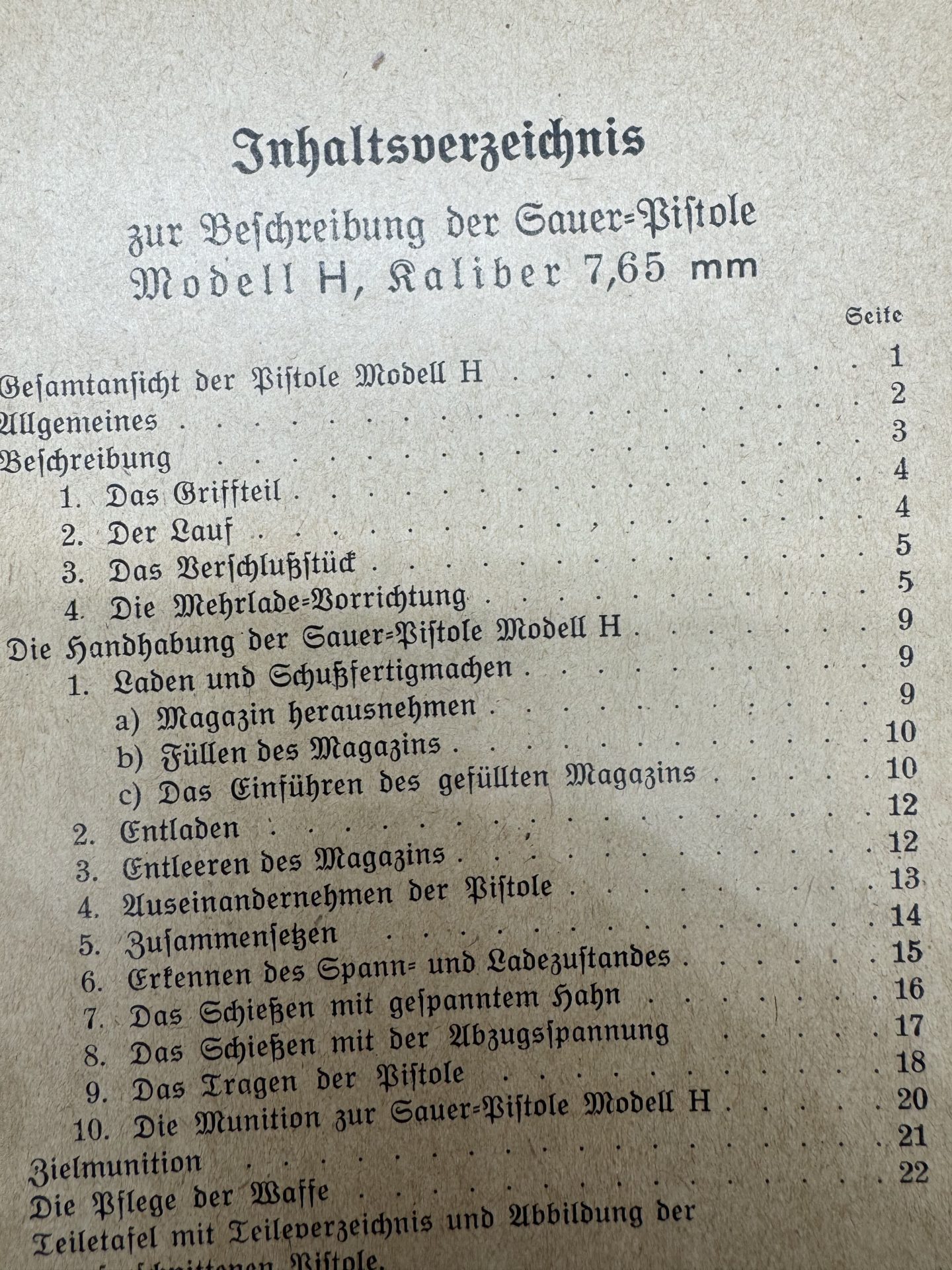 Originale deutsche Anleitung – Sauer-Pistole Modell H (38H) – Kal. 7,65 mm