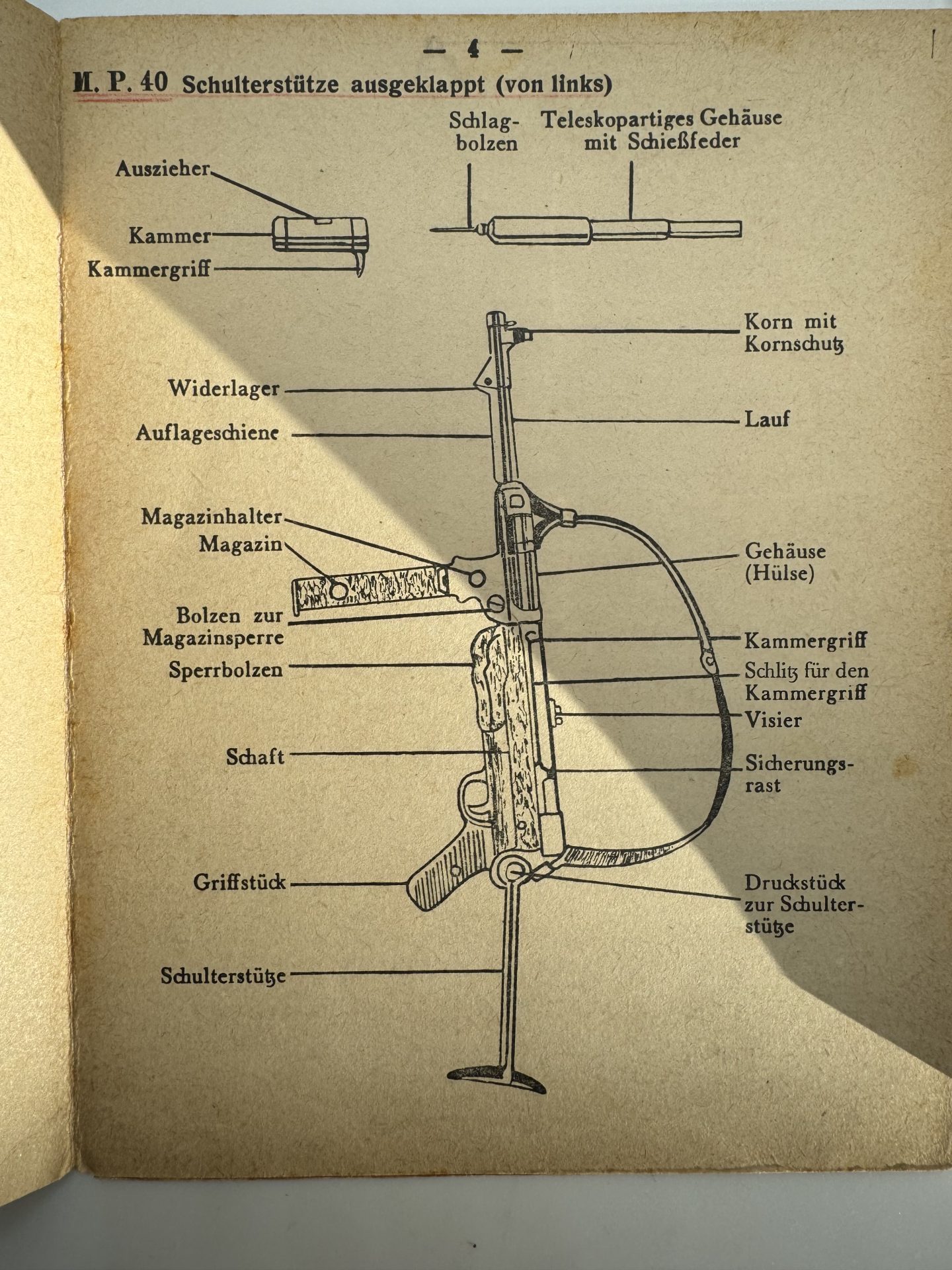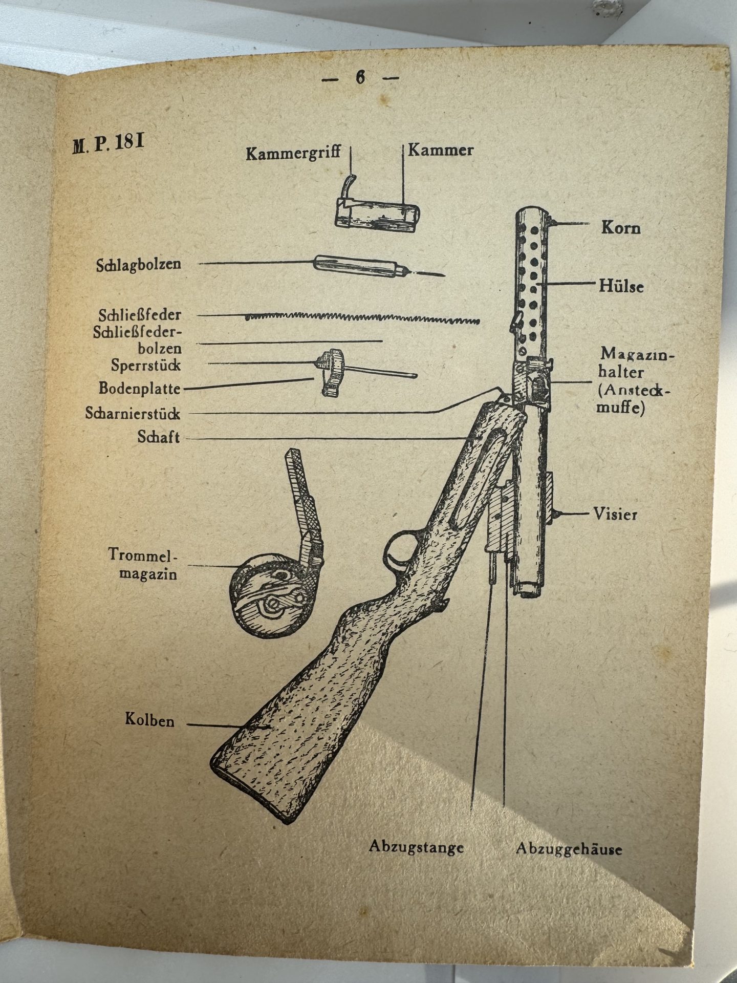 Ausführlicher als einfache Waffentafeln, mit Texten, Schnittzeichnungen, Zerlegung und Funktionsbeschreibung der MP18-I und MP40.