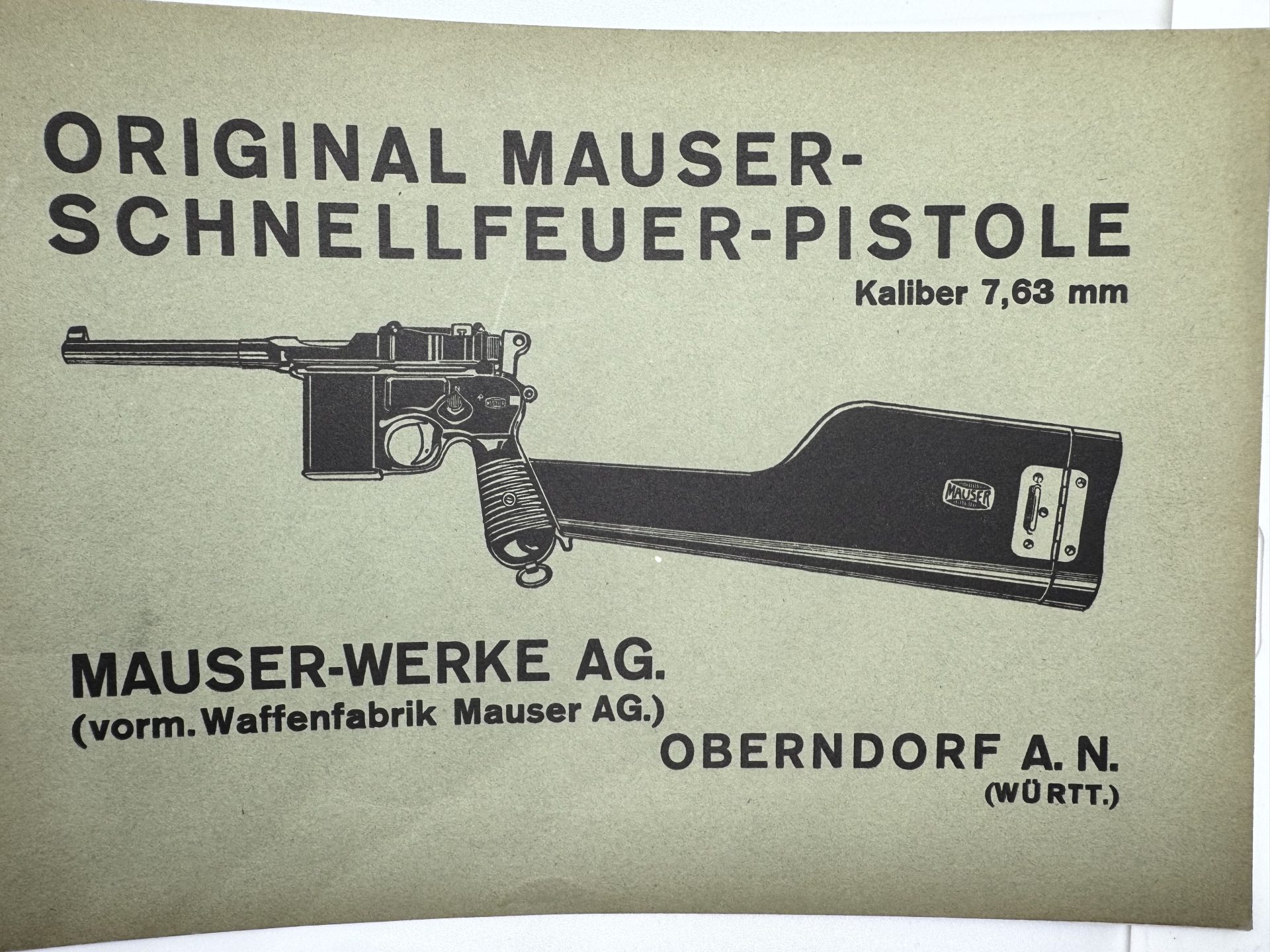 Seltenes Vorkriegsdokument aus der frühen Produktionsphase der Schnellfeuer-Pistole, sehr gesucht bei Sammlern.