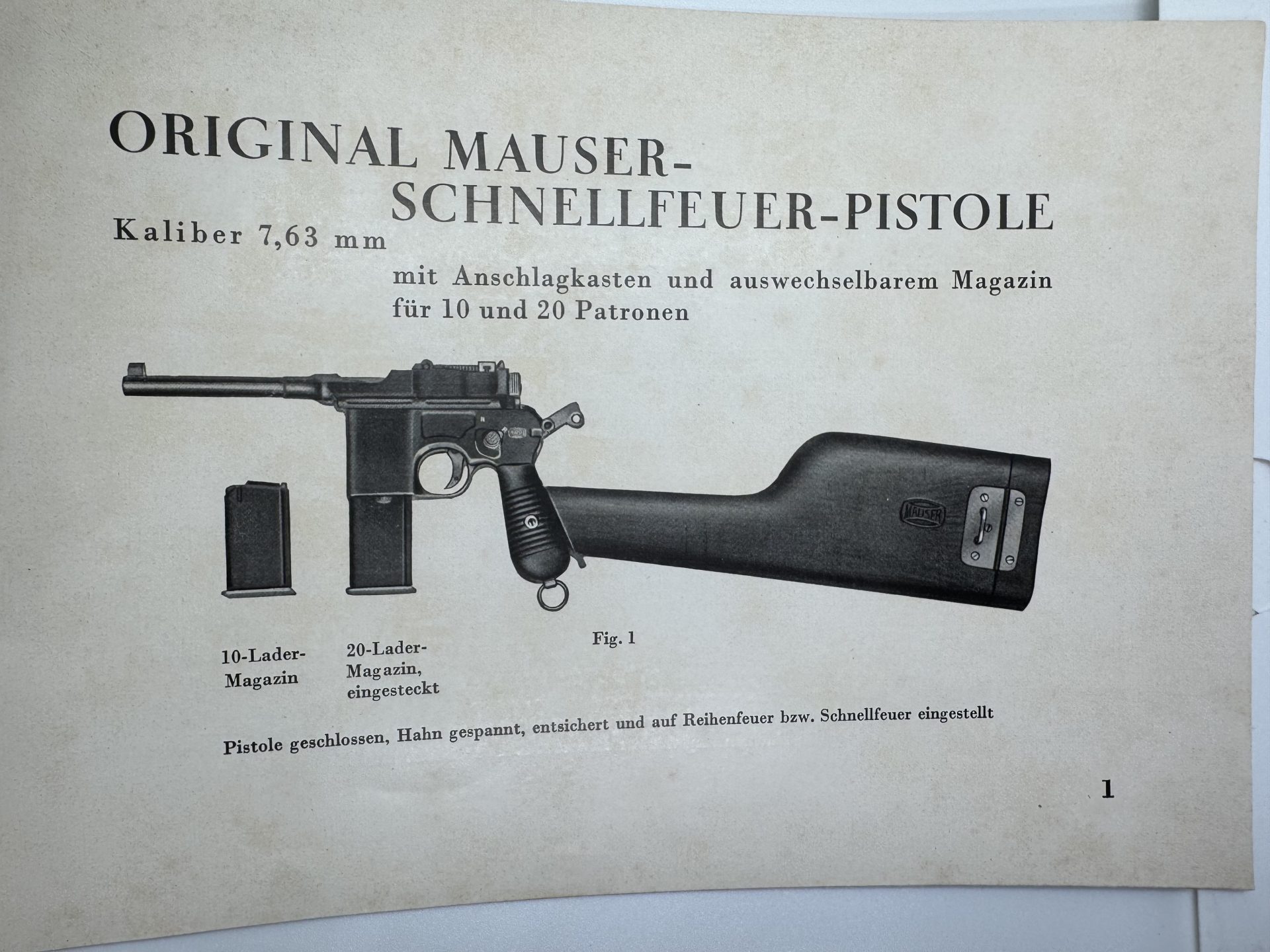 Original Mauser Schnellfeuer C96 Manual – 7.63 mm – July 1932 (German language)